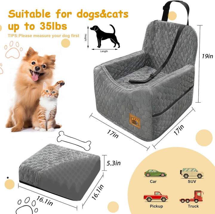 Dog Car Seat for Small/Medium Dogs, Memory Foam Dog Booster Seat, Travel Safety Per Car Seat with Washable Removable Cover